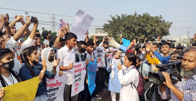 রামপুরায় পুলিশের বাধার পর ফের মানববন্ধনে শিক্ষার্থীরা