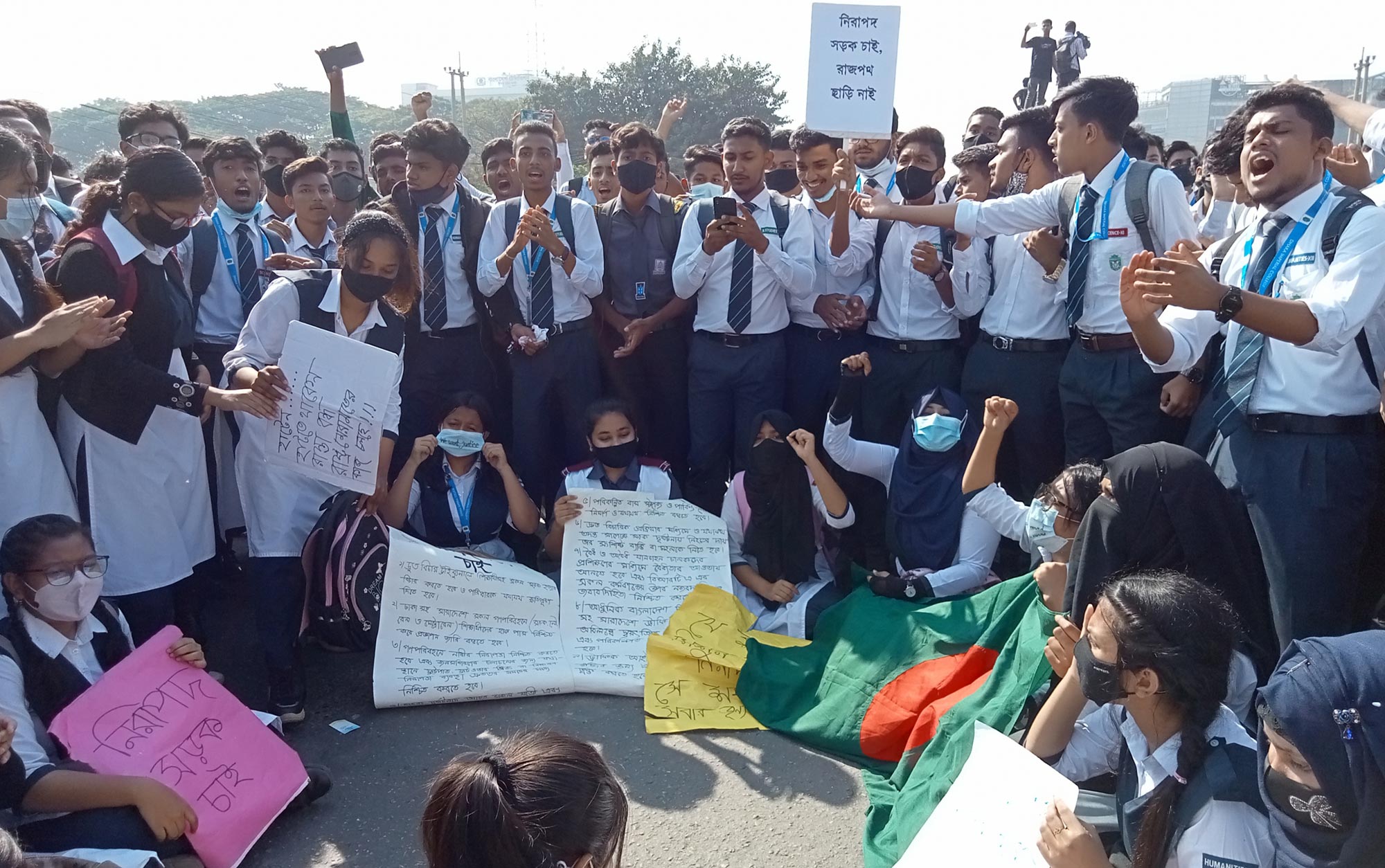 নিরাপদ সড়কের দাবিতে অবরুদ্ধ ঢাকা, রাজপথ শিক্ষার্থীদের দখলে