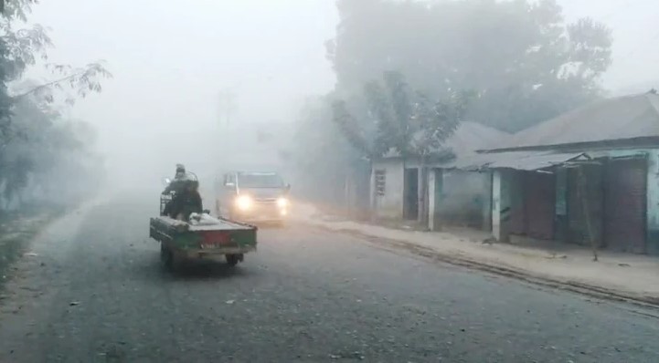 দিনাজপুরে বৃষ্টির মতো ঝরছে ঘনকুয়াশা
