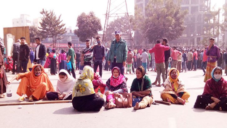 সড়ক অবরোধ করে মিরপুরে পোশাক শ্রমিকদের বিক্ষোভ