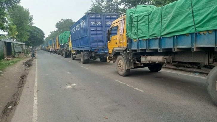 পারাপারের অপেক্ষায় দৌলতদিয়ায় ট্রাকের লম্বা সারি