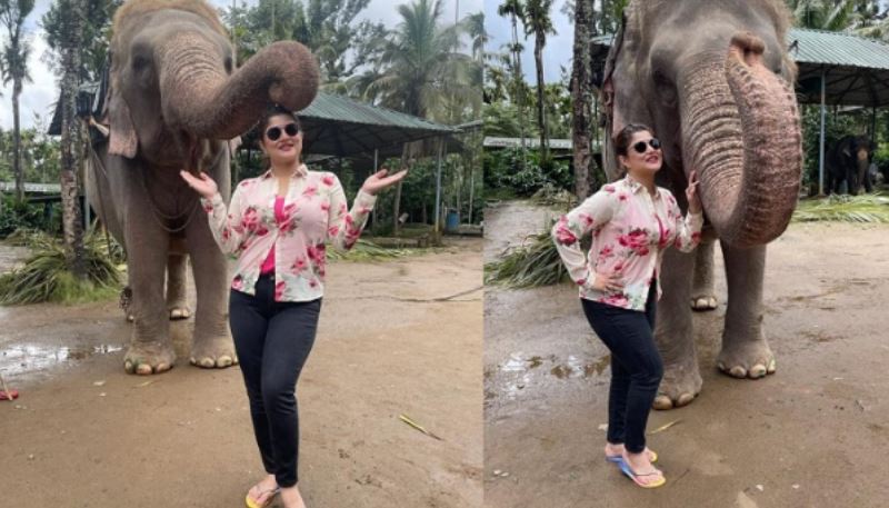 হাতির শুঁড়ে মজা লুটলেন শ্রাবন্তী