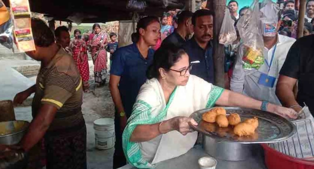 দোকানে দাঁড়িয়ে চপ ভেজে বিক্রি করলেন মমতা