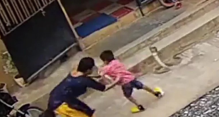 ঝুঁকি নিয়ে সাপের দংশন থেকে সন্তানকে বাঁচালেন মা