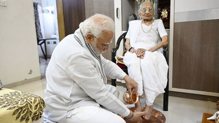 শততম জন্মদিনে মায়ের পা ধুইয়ে দিলেন মোদি
