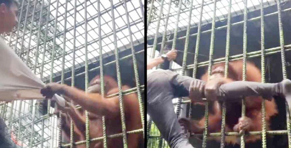 ছবি তুলতে খাঁচার পাশে যুবক, পা টেনে ধরলো ওরাংওটাং