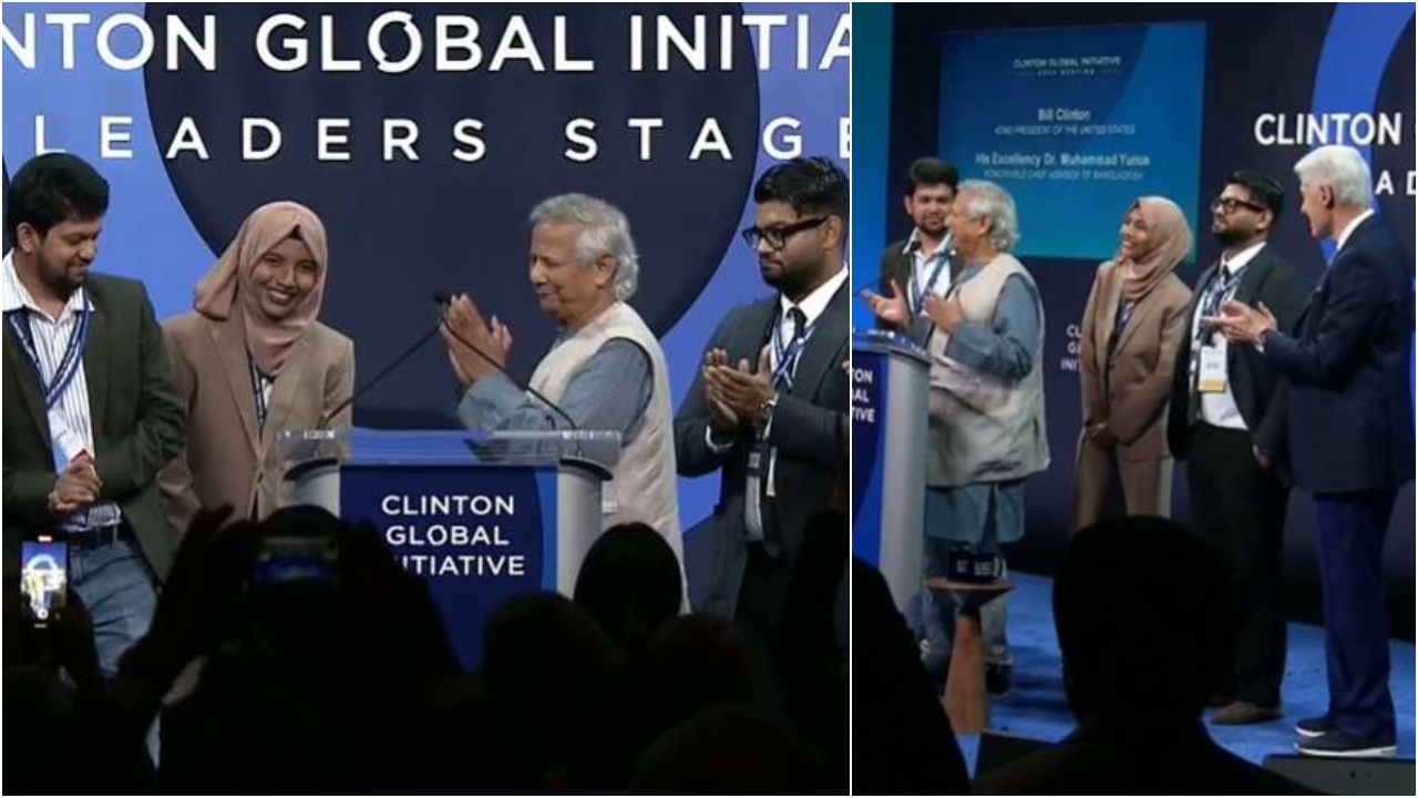 শিক্ষার্থীদের হাত ধরে মঞ্চে আনলেন ড. ইউনূস
