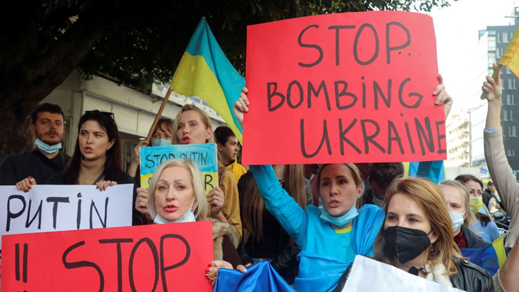 ইউক্রেনে হামলা বন্ধের দাবিতে রাশিয়ায় বিক্ষোভ