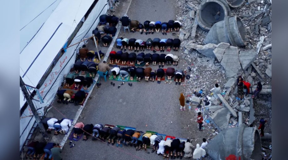 গাজায় ধ্বংসপ্রাপ্ত মসজিদে ঈদের নামাজ আদায় ফিলিস্তিনিদের