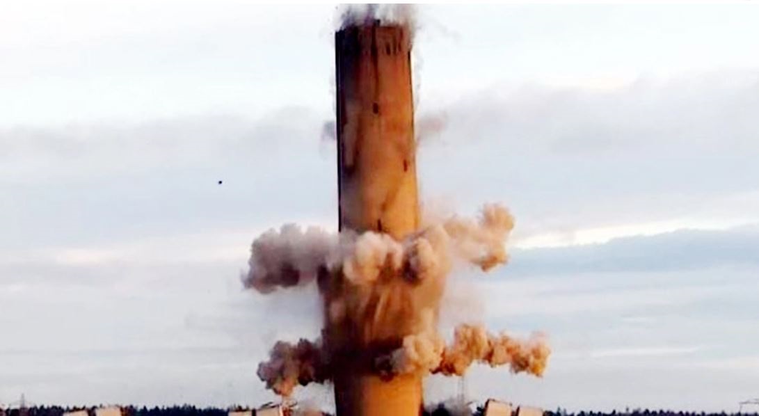 বিস্ফোরক দিয়ে গুঁড়িয়ে দেওয়া হলো ৬০০ ফুট চিমনি