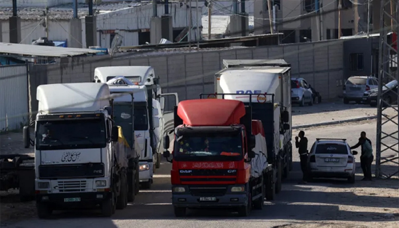 যুদ্ধবিরতির পর গাজায় ঢুকছে ত্রাণবাহী ট্রাক