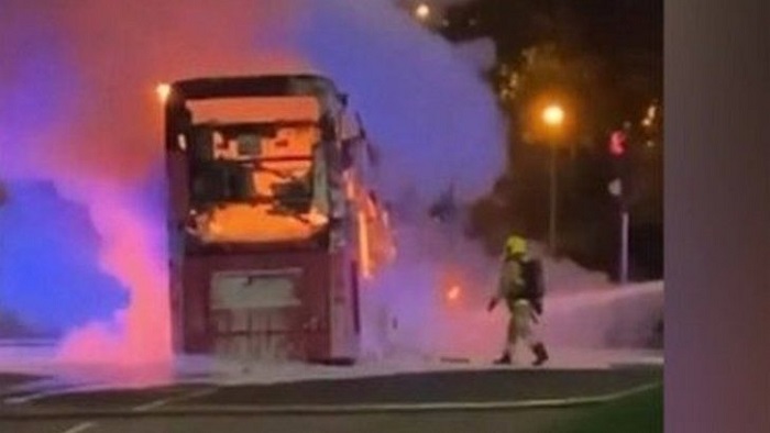 ছিনতাইয়ের পর আগুন ধরিয়ে দেওয়া হলো যাত্রীবাহী বাসে