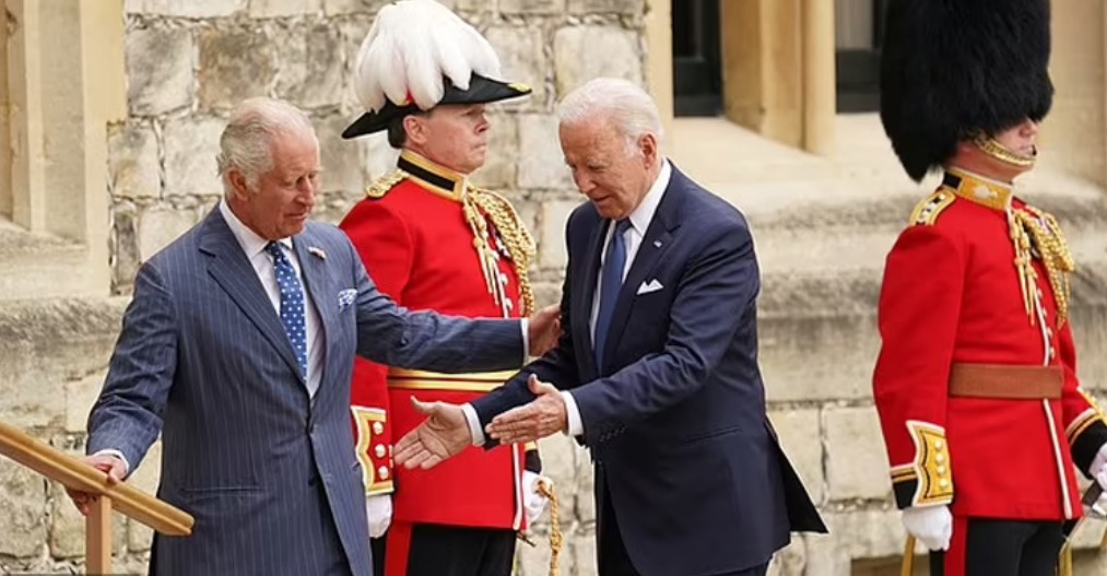 রাজা চার্লসকে দাঁড় করিয়ে গার্ডের সঙ্গে গল্পে মশগুল বাইডেন!