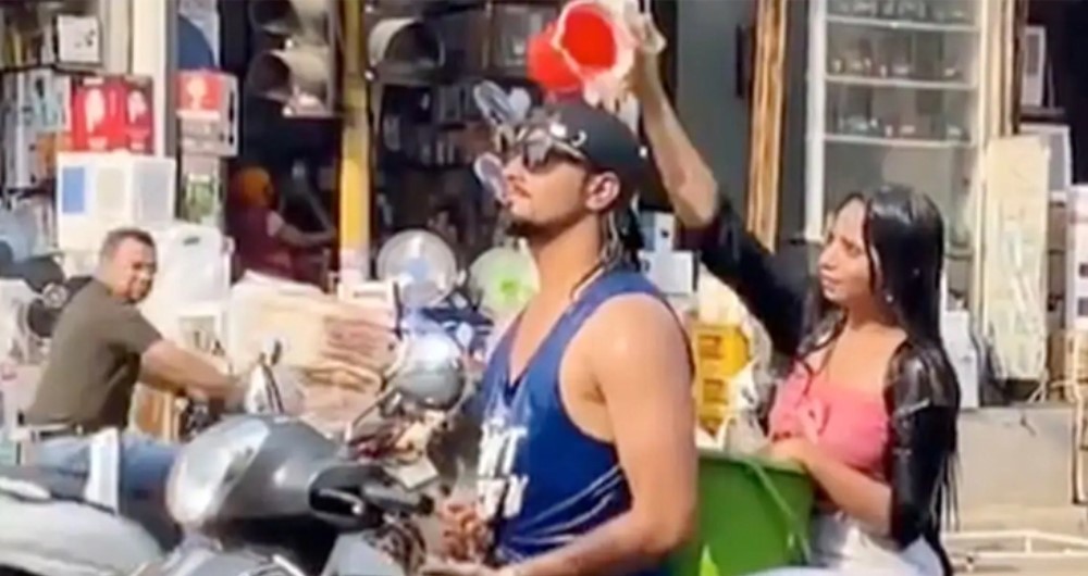 স্কুটারে যেতে যেতে বালতি মগ নিয়ে গোসল তরুণ-তরুণীর, ভিডিও ভাইরাল