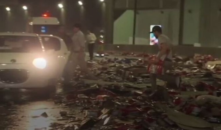 সড়ক থেকে বিয়ার লুট করার ভিডিও ভাইরাল