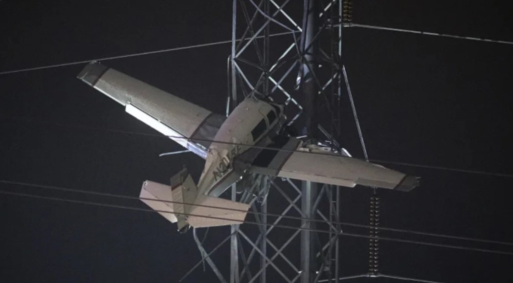 বিদ্যুতের খাম্বার ওপর বিধ্বস্ত হওয়ার পর ঝুলে গেলো প্লেন