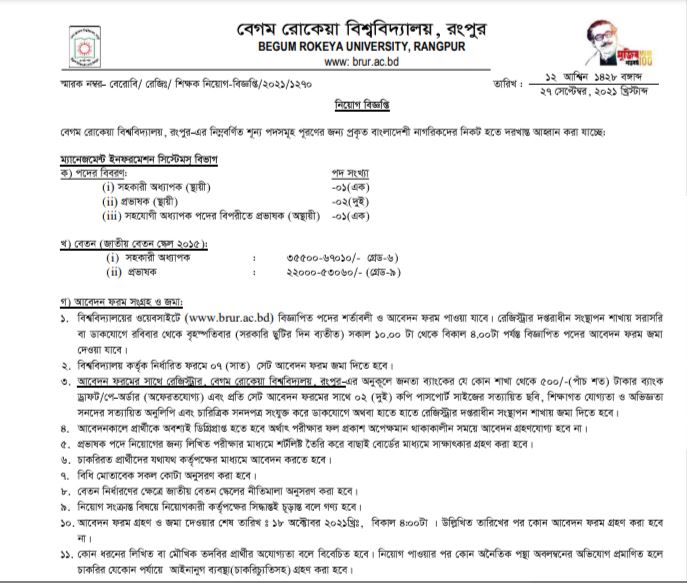 বেগম রোকেয়া বিশ্ববিদ্যালয়ে নিয়োগ