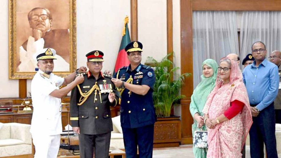 র্যাঙ্ক ব্যাজ পরানো হয়েছে নবনিযুক্ত সেনাপ্রধানকে