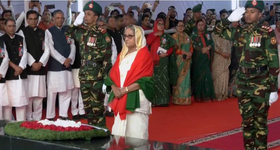 ঐতিহাসিক ৭ মার্চে বঙ্গবন্ধুর প্রতিকৃতিতে প্রধানমন্ত্রীর শ্রদ্ধা