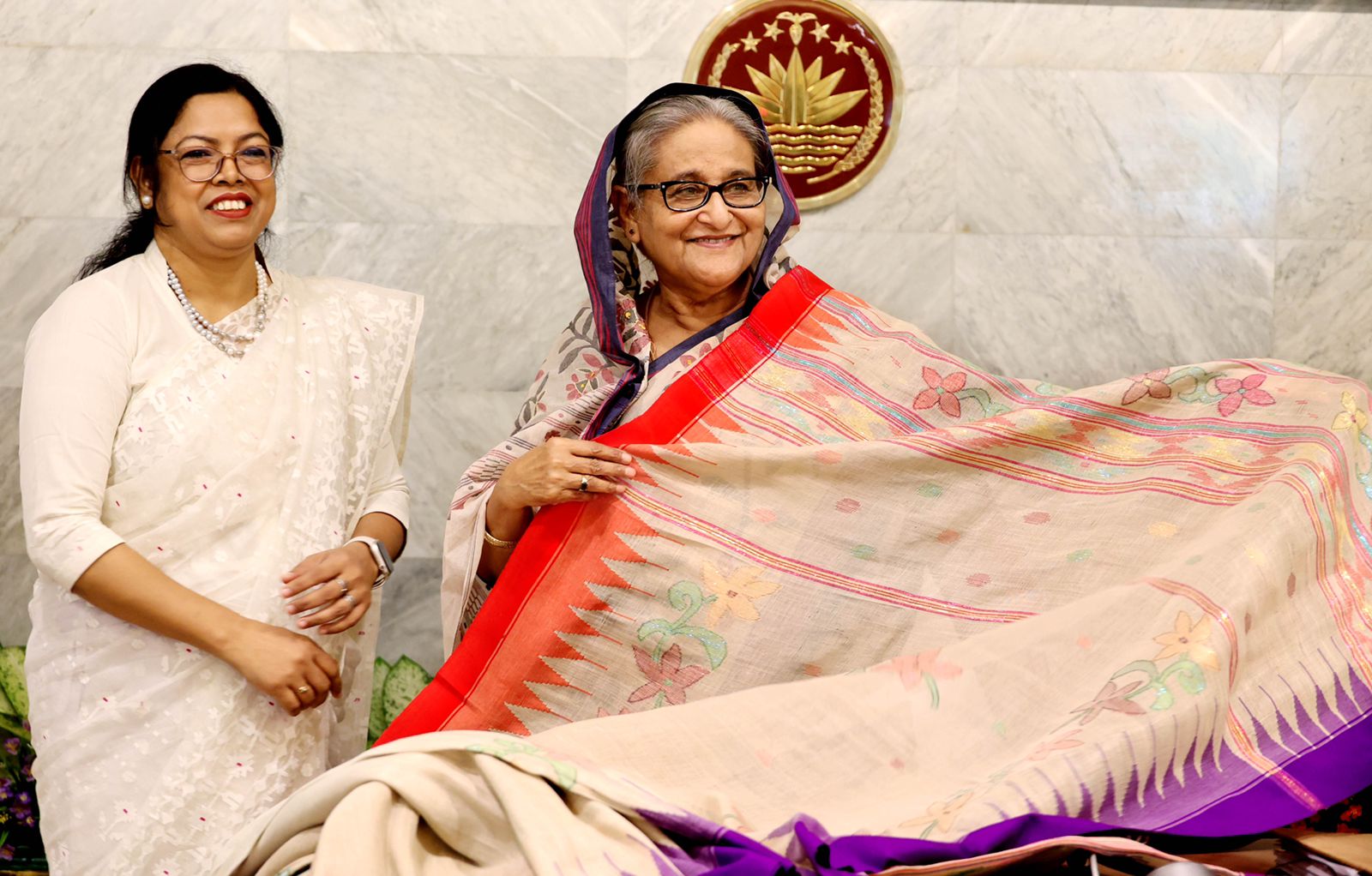 কলাগাছের তন্তুর শাড়ি উপহার পেলেন প্রধানমন্ত্রী