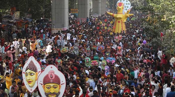 মঙ্গল শোভাযাত্রায় স্বতঃস্ফূর্তভাবে এসেছে মানুষ