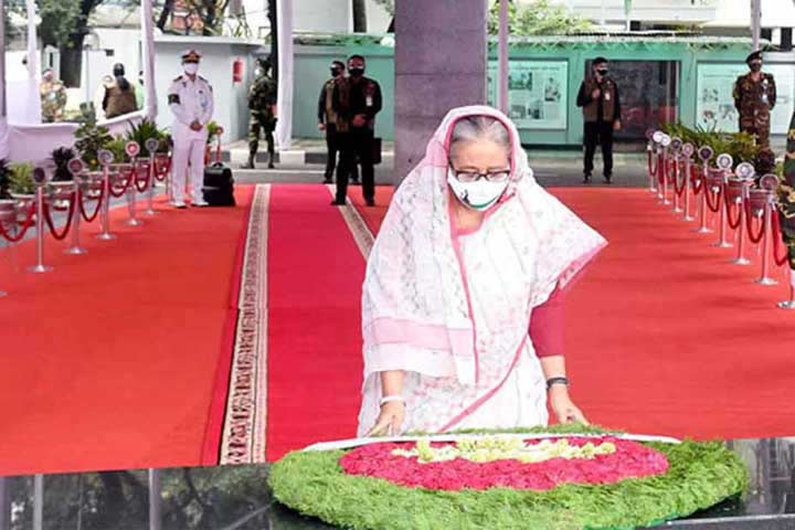 বঙ্গবন্ধুর প্রতিকৃতিতে প্রধানমন্ত্রীর শ্রদ্ধা