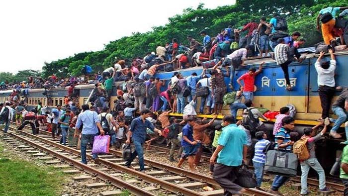 ট্রেনে ঈদযাত্রার দ্বিতীয় দিনেও মানুষের চাপ