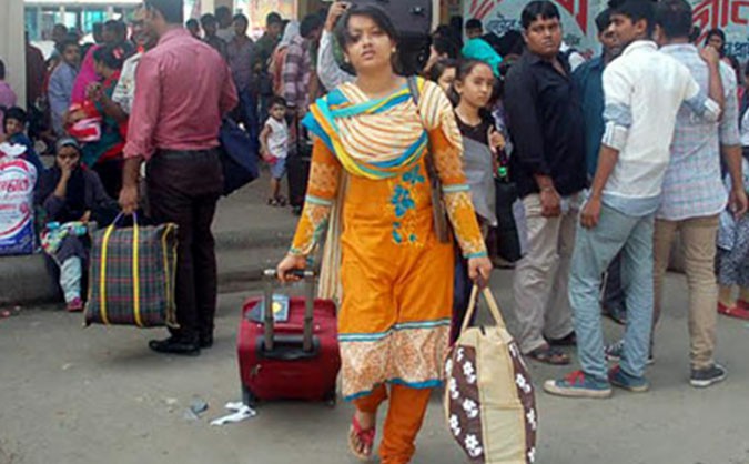 ঘরমুখো যাত্রীদের নিয়ে বাসটার্মিনাল-রেলস্টেশনমুখী যানবাহনের চাপ