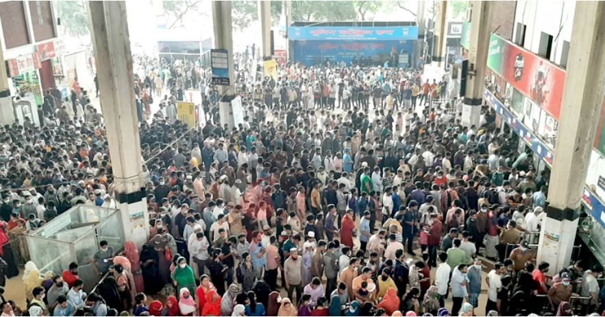 ট্রেনের অগ্রিম টিকিট বিক্রি শুরু, কমলাপুরে উপচেপড়া ভিড়