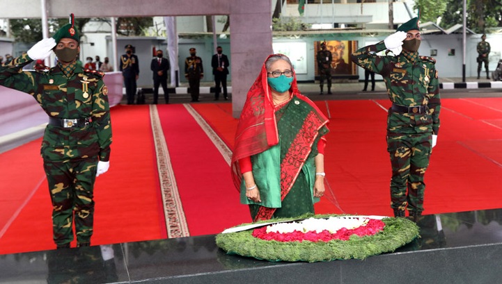 বঙ্গবন্ধুর প্রতিকৃতিতে শ্রদ্ধা নিবেদন প্রধানমন্ত্রীর