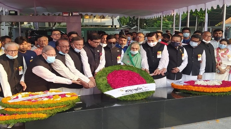 গোপালগঞ্জের টুঙ্গিপাড়ায় জাতির পিতার সমাধিতে রাষ্ট্রপতি-প্রধানমন্ত্রীর ফুলেল শ্রদ্ধা