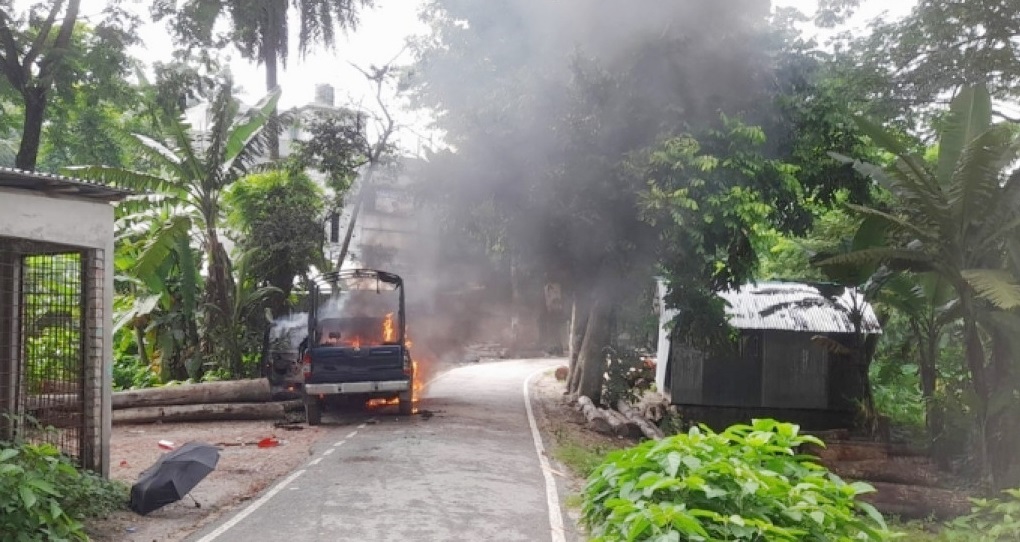 এনসিপির জুলাই পদযাত্রা: গোপালগঞ্জে পুলিশের গাড়িতে আগুন দিলো নিষিদ্ধ ছাত্রলীগ