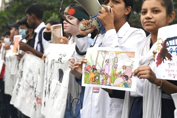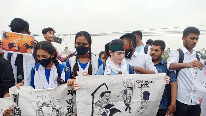 মুখে কালো ব্যাজ পরে সড়কে নামছেন শিক্ষার্থীরা