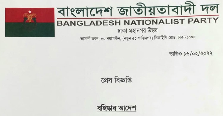 ঢাকা মহানগর উত্তর বিএনপির ৩ নেতা বহিষ্কার