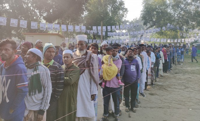 শীত উপেক্ষা করে ভোটকেন্দ্রে ভোটারদের ভিড়