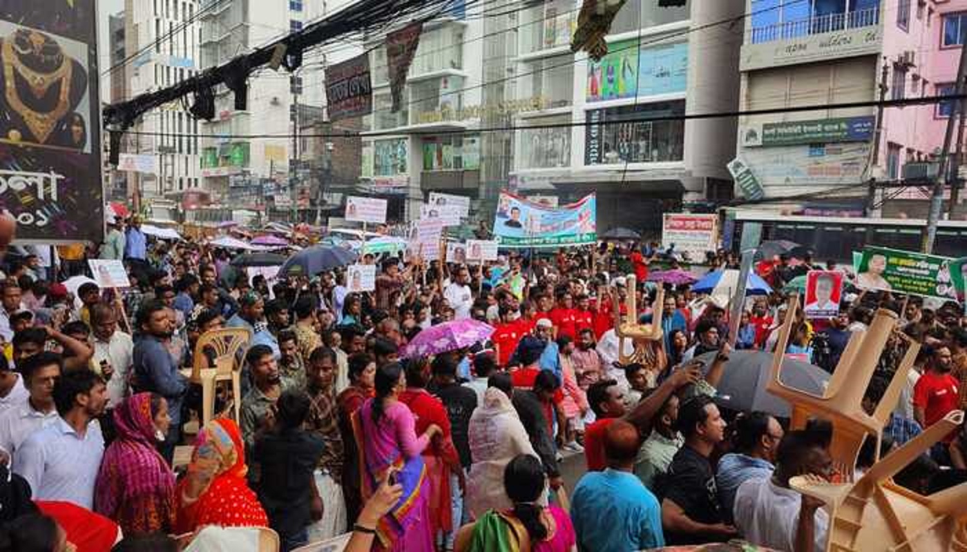 বৃষ্টির মধ্যেও রাজধানীতে আওয়ামী লীগের বিক্ষোভ-মিছিল