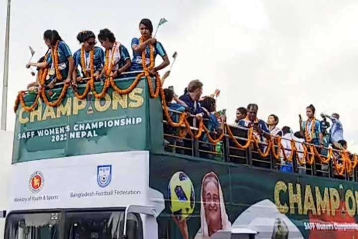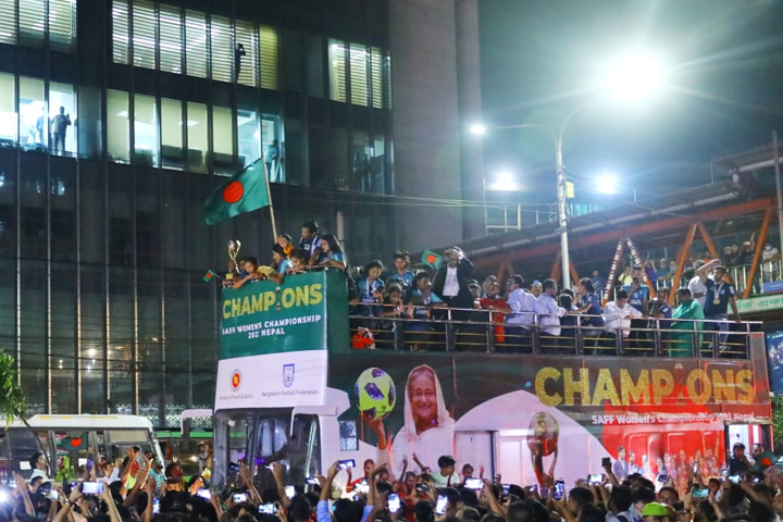 ছাদখোলা বাসে সাবিনাদের শোভাযাত্রা