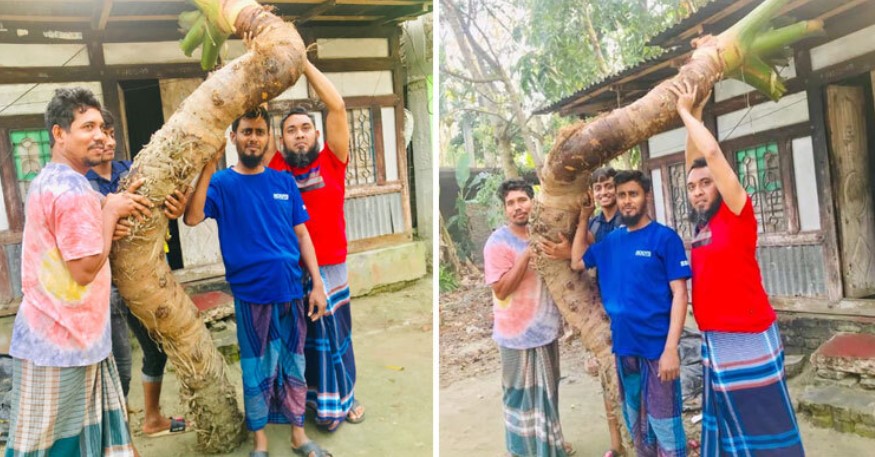 ১১ ফুটের মানকচুর ওজন ৩ মণ, বহন করতে লাগে চারজন