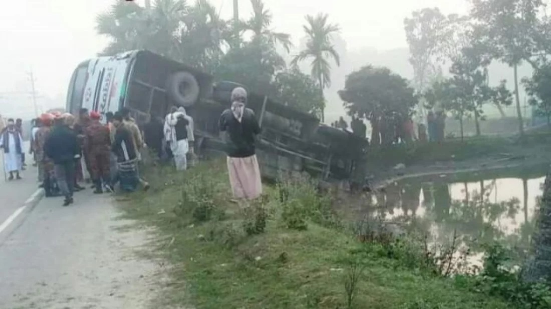 চরমোনাই মাহফিলে যাওয়ার পথে নিয়ন্ত্রণ হারিয়ে উল্টে গেলো বাস