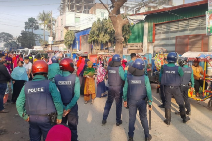বেতন ভাতার দাবিতে ঢাকা-ময়মনসিংহ মহাসড়ক অবরোধ