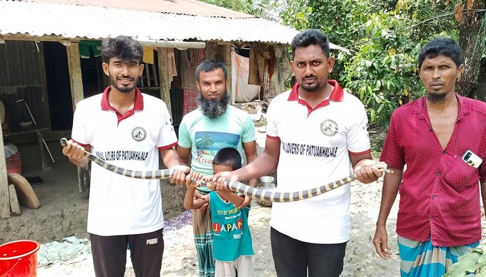 বাড়ির আঙিনায় জালে আটকে গেল শঙ্খিনী সাপ