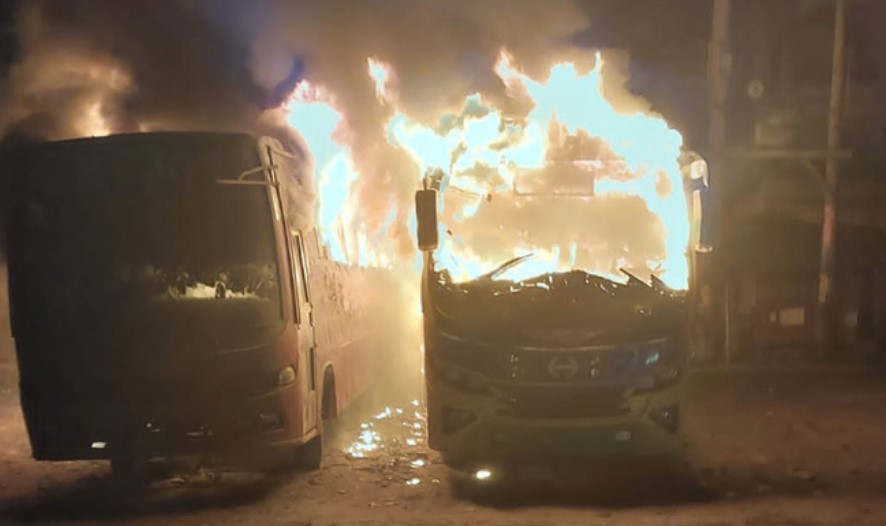নাটোরে দাঁড়িয়ে থাকা ২ বাসে আগুন