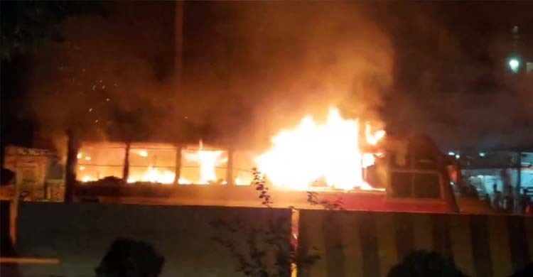 সাভারে আবারও পার্কিংয়ে থাকা বাসে আগুন