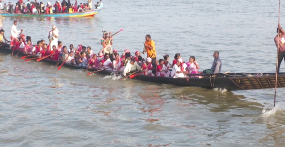 মধুমতীতে নৌকাবাইচ দেখতে মানুষের ভিড়