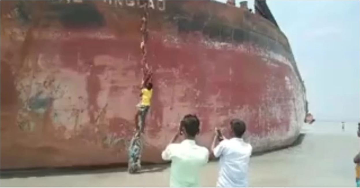 নিঝুম দ্বীপে জোয়ারে ভেসে এলো বিদেশি জাহাজের বার্জ