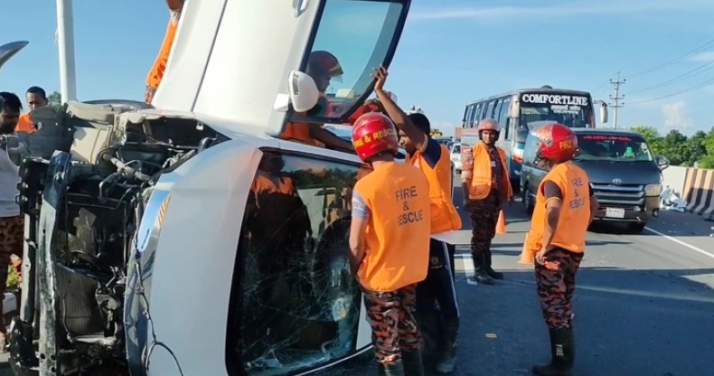 ঢাকা-মাওয়া এক্সপ্রেসওয়েতে উল্টে গেলো মাইক্রোবাস, আহত ৫