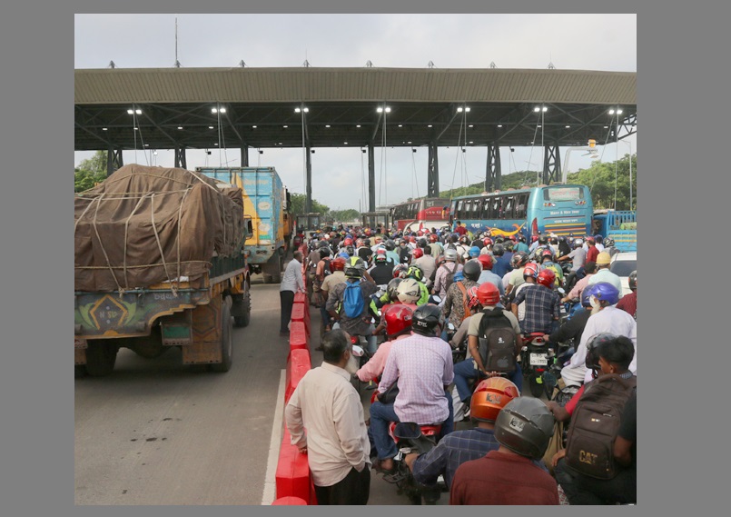পদ্মা সেতুর মাওয়া প্রান্তে গাড়ির দীর্ঘ সারি