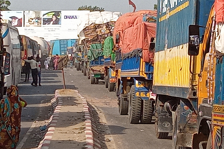 দৌলতদিয়ায় যাত্রী কম, বেড়েছে ট্রাকের চাপ
