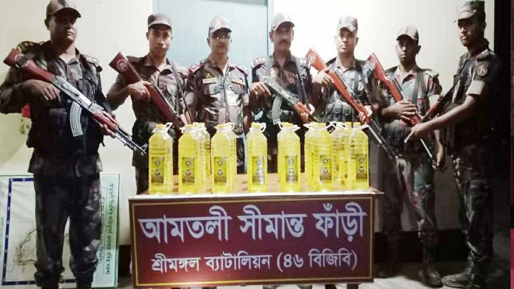 কুলাউড়ায় ভারতে পাচারকালে টিসিবির ২১ বোতল তেল উদ্ধার