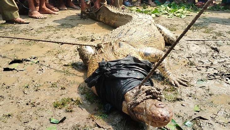 রামপালে পুকুর থেকে উদ্ধার কুমির সুন্দরবনে অবমুক্ত